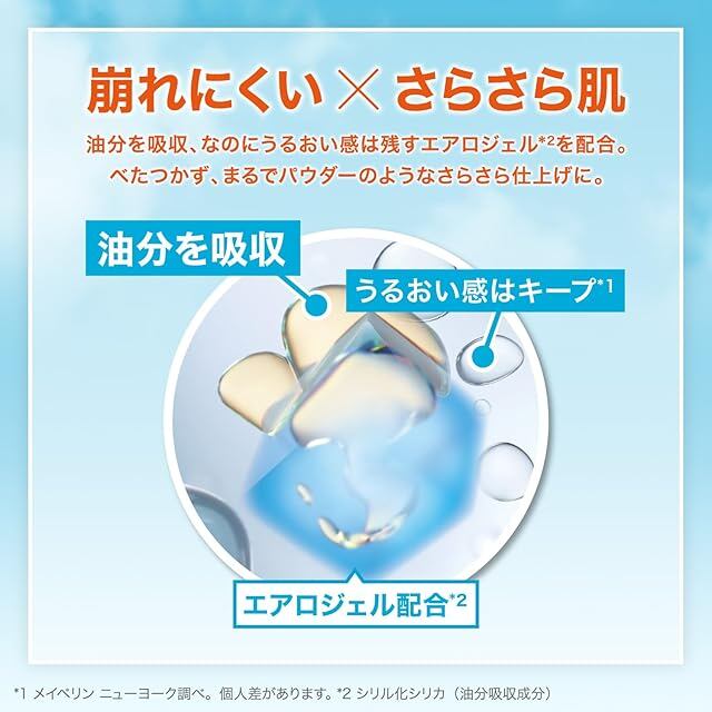 SPF22の日焼け止め効果付き。エアロジェル(*1)配合で、うるおい感は残しつつ油分を吸収。しっかり密着。13色展開
