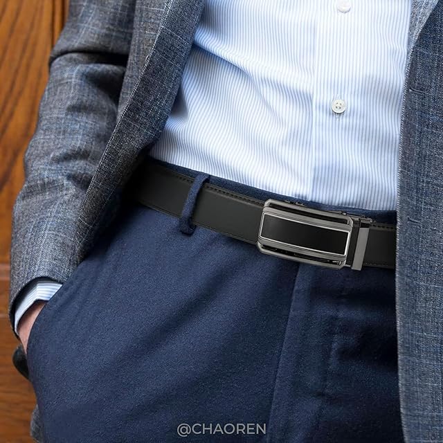 [CHAOREN] ベルト メンズ ビジネス 大きいサイズ オートロック式 紳士用ベルトスーツ 革 穴なし 無段階調整 コンフォート 箱付き