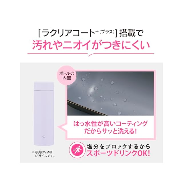 【シームレスせん・食洗機対応】象印マホービン 水筒 480ml スクリューマグ コンパクト お手入れカンタン 保温・保冷 アイシーパープル SU-AA48-VM