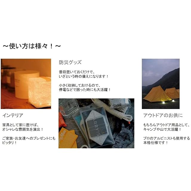 点灯時間:10時間(強)、42時間(中)、72時間(弱)