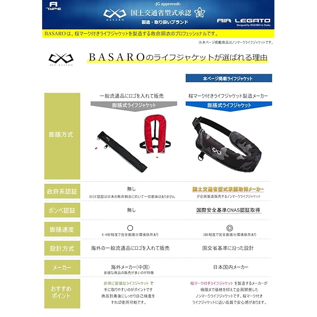 JES-BASARO (ジェスバサロ) ライフジャケット 手動膨張式 釣り 大人用 子供 腰巻き 腰 ベルトタイプ 日本国内メーカー B-Life-Jac-MN/AT 日本語取り扱い説明書 CO2高圧縮ボンベ付き (グリーン迷彩)