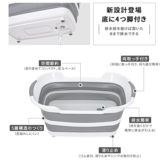 ⭐『2023新設計』「足つきタイプ新登場!排水口カバー付き!」【置いたままで簡単排水】改良型は底に四つの足が付いているから、ちょっとよい高度で排水栓を抜けば置いたままで排水できます。かつ排水口カバーがペットの毛を集めてポイッと捨てられるので大変便利。