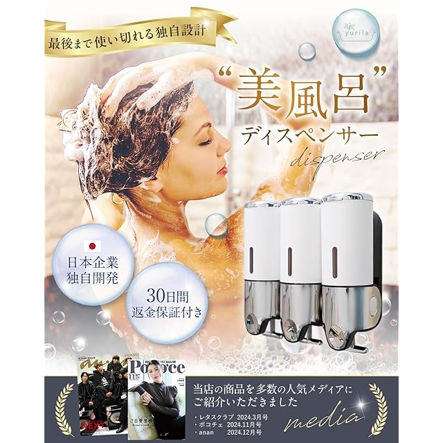 【日本企業独自開発】当店独自の形状により、バスルームを"スッキリ彩る"シャンプーディスペンサー