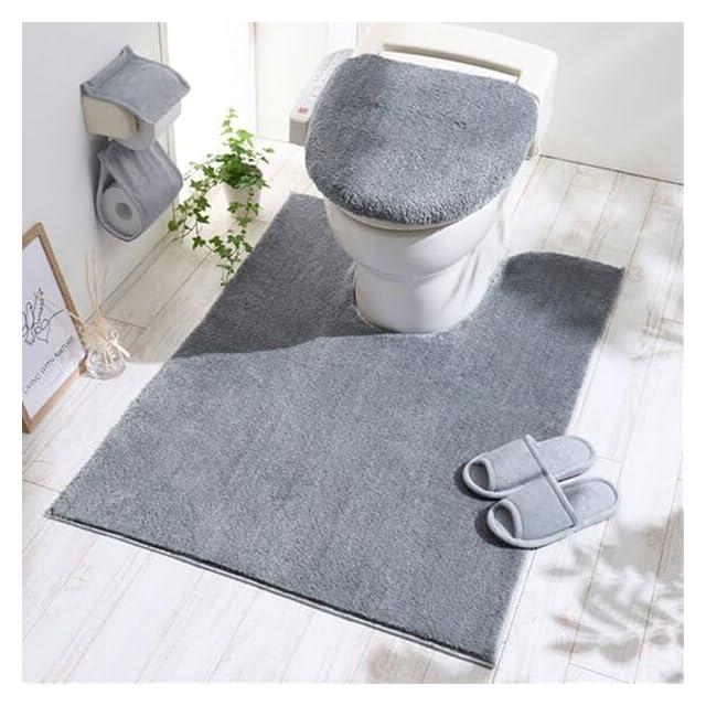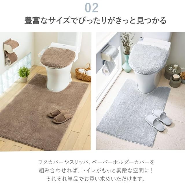 ベルーナ(BELLUNA) トイレマット ロング 洗える おしゃれ トイレカバー フタカバー スリッパ&ペーパーホルダー 耳長 ワイド マイクロ素材 滑り止め 抗菌防臭 ふわふわ へたりにくい 単品 (283970-506)