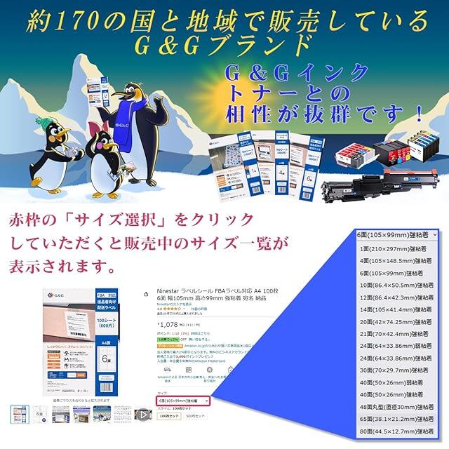 Ninestar G&G ラベルシール A4 100枚 14面 幅105mm 高さ41.4mm 強粘着 宛名 納品