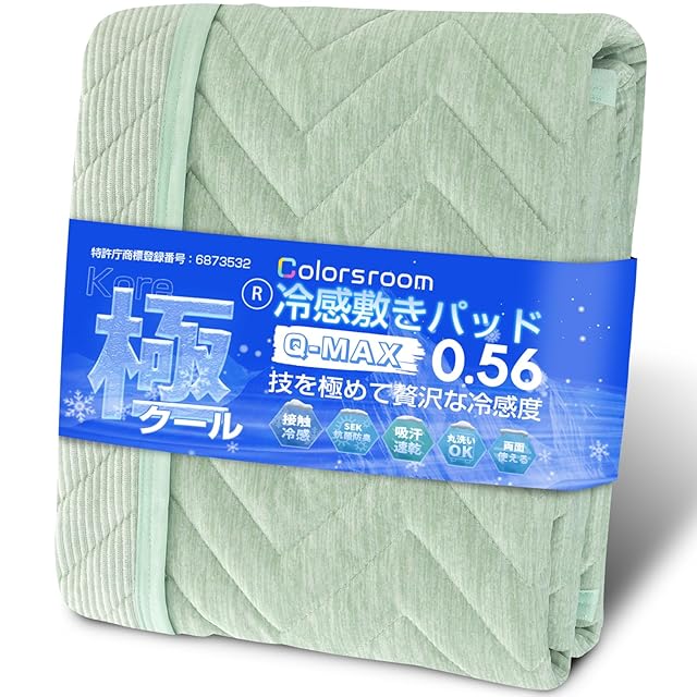 Colorsroom 敷きパッド シングル 夏 冷感 ひんやり Q-max0.56 高級冷感素材「霜降り」 リバシーブル 波線キルト 吸水速乾 抗菌・防臭・防ダニ 夏用 しきぱっと クール 接触冷感 パッドシーツ 100x205 アイスグリーン