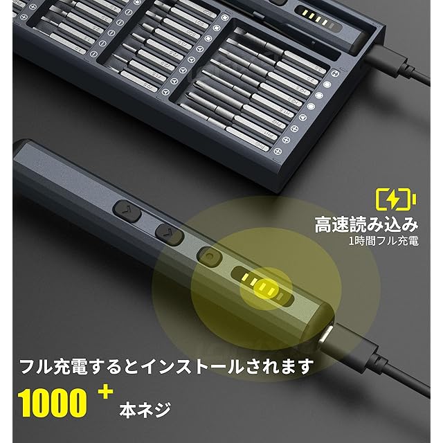 【VOP充電保護】ほとんどの電動工具は、3か月以上使用しないと、バッテリーが損傷したり、ギアが固まったりする可能性があります。しかし、当社の電動ドライバーは、VOP充電保護の新技術を採用することで、これを克服しています。このミニ電動ドライバーは、が長の作業時間で安全性を確保するために4999回のテストを受けています。1年以上使用しなくても、当社の電動ドライバーセットはフル充電後に再び正常に動作します。 60分の急速充電を備えたtype-cインターフェースにより、いつでもどこでも便利に充電できます
