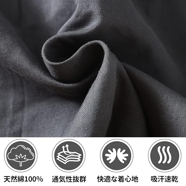 【安全な天然素材】天然素材の綿を採用しているので、さらっとした優しい着心地は素肌に直接触れても心地よい。綿素材特有のシャリ感は着心地がとても良い。
