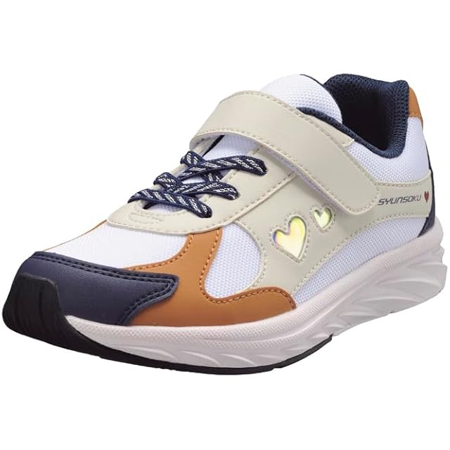 [シュンソク] スニーカー キッズ 女の子 子供靴 幅広 軽量 16~23cm 3E LEJ 8130 ホワイト/ベージュ 21.0 cm