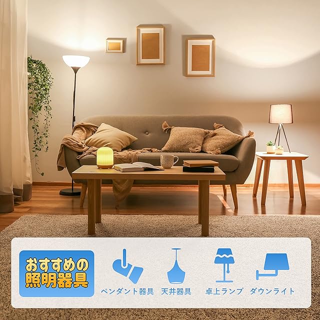 取付簡単:LED電球は標準E17口金なので、従来の白熱電球に直接取替えられます。ダウンライト、天井埋め込みライト、ペンダント器具、卓上ランプなどの照明器具に使用できます。