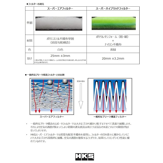 ・新開発乾式不織布フィルター 密度勾配型構造を採用し空気の流れに対して目の粗い層から細かい層へと徐々にフィルター密度を変えていくことで、様々な大きさのダストを段階的に確実に捕獲します。また繊維構成を最適化することで通期抵抗の低減も実現しました。