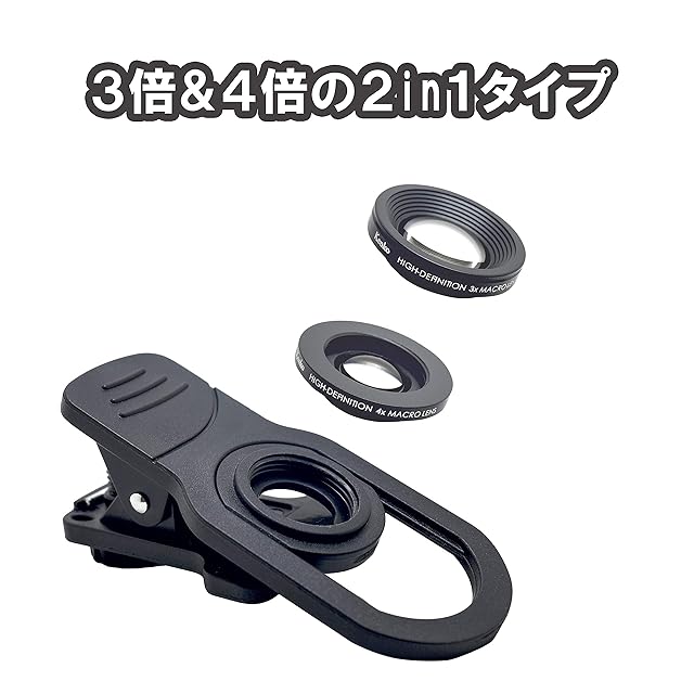 パッケージ内容:接写レンズ(3倍レンズ×1、4倍レンズ×1)、専用ピントフード、レンズクリップ、レンズリアキャップ、収納ポーチ、クリーニングクロス
