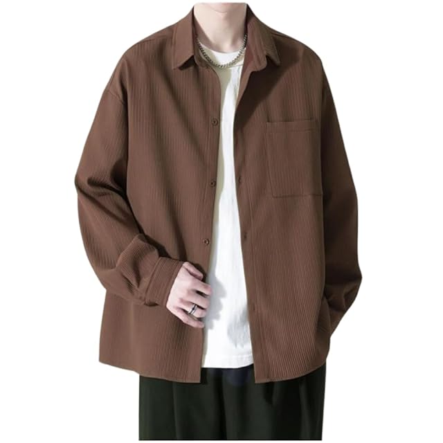 [foveitaa] メンズ シャツ 長袖 春秋服 メンズ ワイシャツ 大きい サイズ ビジネス カジュアル yシャツ ゆったり おしゃれ 服 軽い 柔らかい かっこいい トップス 無地 シンプル オシャレ coffee-XL