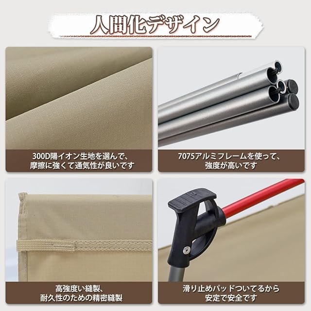 【組み立て簡単】折りたたみ構造で、組み立てが簡単で、数分間で組立が完了します。取り外しも簡単で、時間と手間が省けます。重さ:2.1kg、収納袋サイズ約:40x16x16cm、旅行カバンに入れてもいいです。キャンプ、トレッキング、バックパッカー、冒険家に最適です。