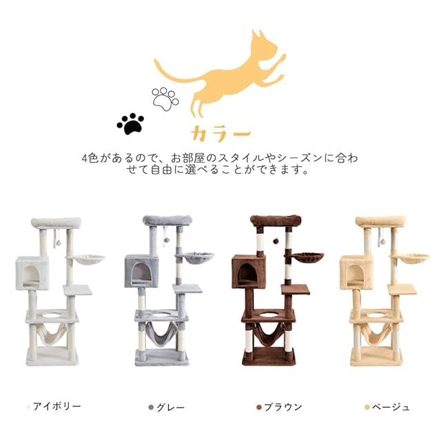 AIFY キャットタワー 据え置き スリム 大型猫 中型 小型 ミニ 多頭飼い ハンモック おしゃれ かわいい 爪とぎ おもちゃ 猫タワー ねこ 爪研ぎ 麻紐 子猫 シニア 省スペース コンパクト 140cm アイボリー