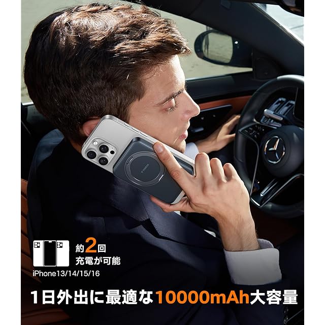 【Qi2搭載、驚異の15Wワイヤレス充電】A-ppleが策定した次世代マグセーフモバイルバッテリー充電規格「Qi2」により、従来比2倍の15W急速充電を実現。わずか45分でiPhoneを40%充電可能な圧倒的スピードに、10000mAhの大容量が加わり、iPhone 16に約2回以上充電可能。外出先でも「充電切れ」の概念を消し去ります。パススルー充電対応で、magsafe対応モバイルバッテリーとスマホの同時急速充電も可能。