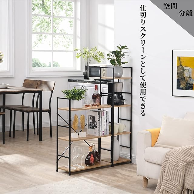 ★【安定性&耐久性】クロスバー補強金具あり、背面のクロスバー補強金具で更に安定性をアップします。頑丈な金属で作られており、傷がつきにくく、耐熱性と防水性を備えています。本棚の安定性を確保するために底部に4つの保護キャップ。