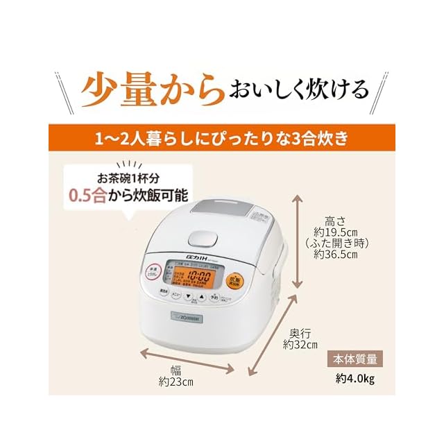 象印マホービン 炊飯器 3合 一人暮らし 小容量 極め炊き 圧力IHタイプ 日本製 保温30時間 ホワイト NP-RM05-WA