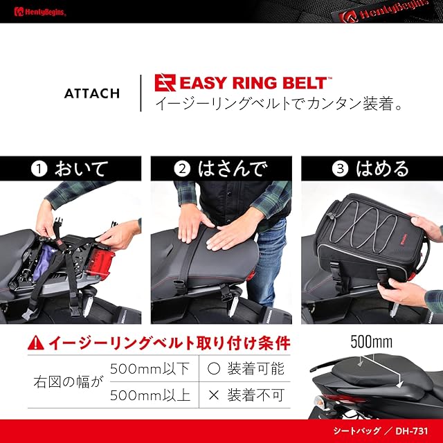 ヘンリービギンズ(Henly Begins) デイトナ バイク用 シートバッグ 13~26L ヘルメット収納サイズ イージーリングベルト付属 DH-731 98661