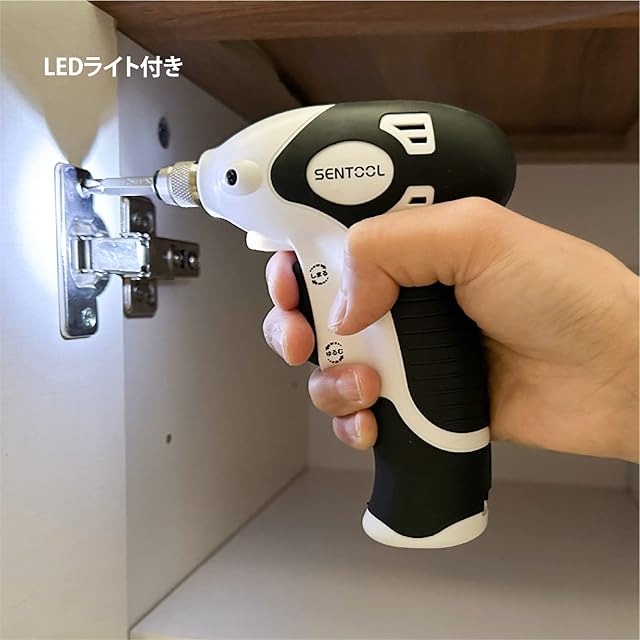 【正逆転切替簡単すばやい】スイッチの上側を押すと時計回り、下側を押すと反時計回りに回転する。スイッチを離せば回転は止まる。市贩の 電動ねじ回し は左右切替スイッチを押してから回転方向を変更する必要があります。
