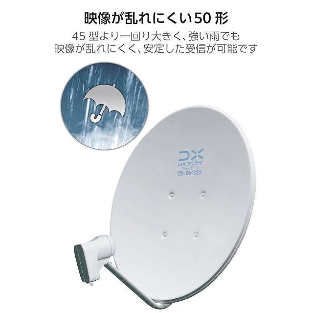 4K8K衛星放送(3224MHz)対応の、BS・110度CS放送を受信する家庭用50形パラボラアンテナです。