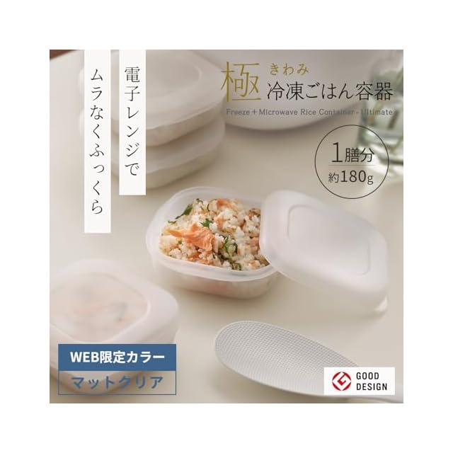 【炊き立てのようなおいしさを】お米のプロと共同開発。「極 冷凍ごはん容器」にWEB限定マットクリアが登場。おいしく「解凍」することに着目し、電子レンジでムラなくふっくらと温められるかたちを極めました。フタをしたまま加熱できます。