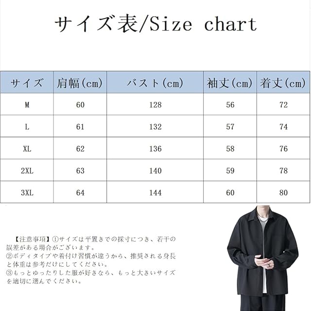 【3XL】適応胸囲の目安:100-106cm 身長の目安:178-190cm 体重:87-97kg