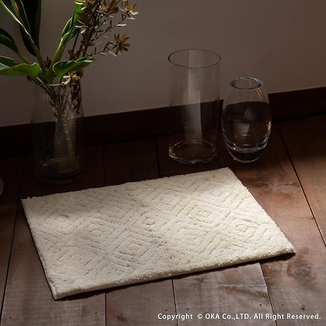 オカ(OKA) 乾度良好ピュール バスマット 約36cm×55cm アイボリー (お風呂マット 大判 浴室 おしゃれ 洗面所 足ふきマット 抗菌 防臭 吸水 速乾 洗える)