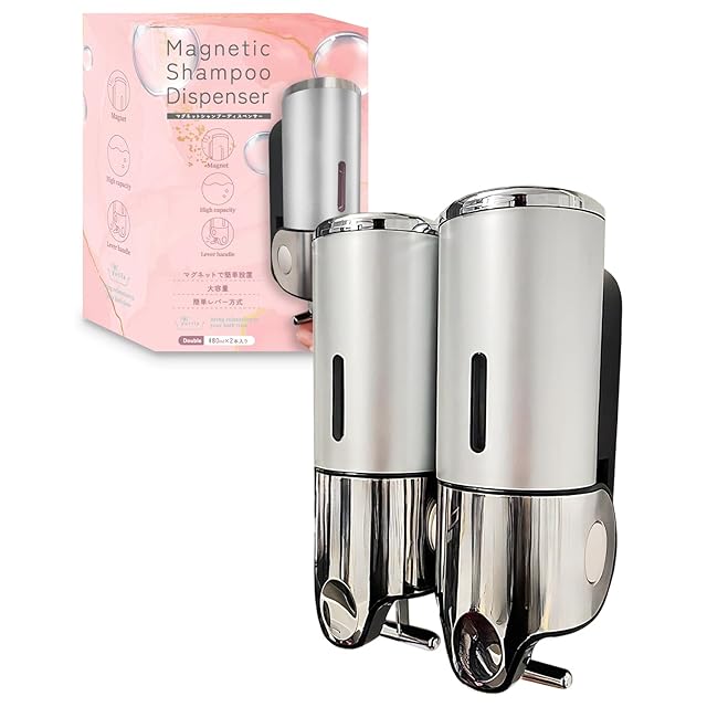 【レタスクラブ掲載】 シャンプーディスペンサー マグネット ディスペンサー シャンプーボトル 大容量 強力 おしゃれ 壁掛け 日本企業独自開発 yurila (シルバー, 2本セット)