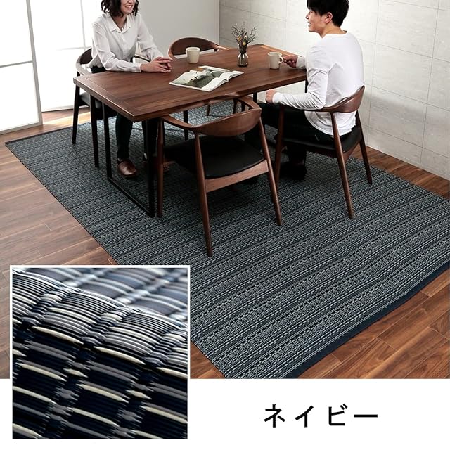 イケヒコ 『バルカン』 肌触りの良い国産 畳 マット 団地間6畳 ネイビー 傷がつきにくく引っ掻き傷にも強い丈夫なPP素材で作ったカーペット 水こぼしや汚れに強くてお手入れ簡単な洗えるラグ 夏は肌に密着しにくくベタつかない キャンプ・花見などアウトドアでも活躍 畳上敷き 畳 へこみ 防止ラグ 防音マット フロアマット カーペット 6畳 日本製 洗える #2150336