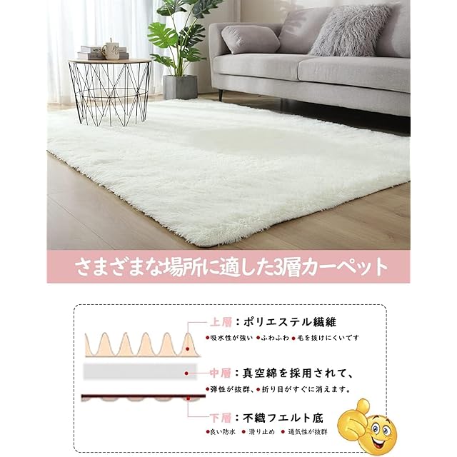 ❤【安心のラグ】カーペットの表面の綿毛は空気に浮遊してちり粒子を捕捉して吸収することができ、室内の空気質量を改善します。ホルムアルデヒドも未検出なので、抵抗力が弱い子供、年配がいる家庭に対して安心のラグです。