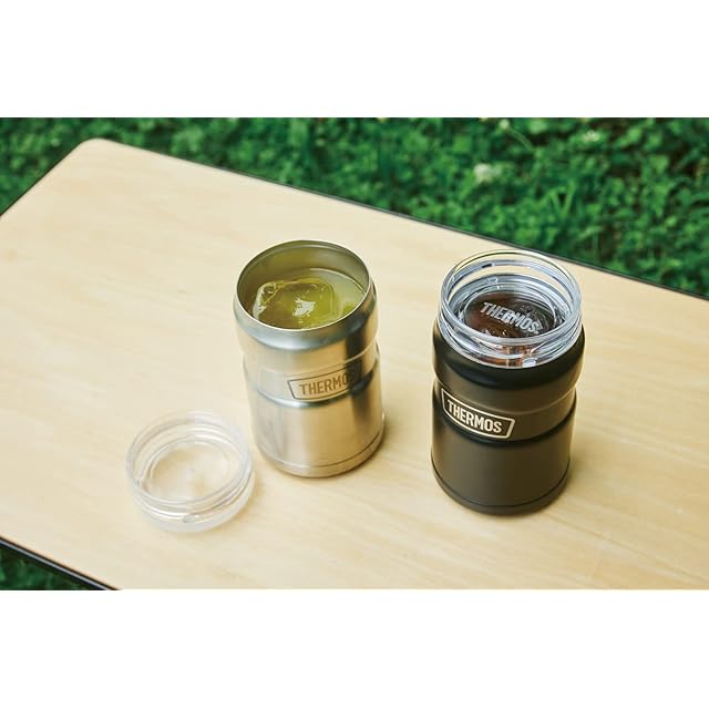 サーモス アウトドアシリーズの保冷缶ホルダー。飲み口を付ければタンブラーとしても使える2wayタイプ。