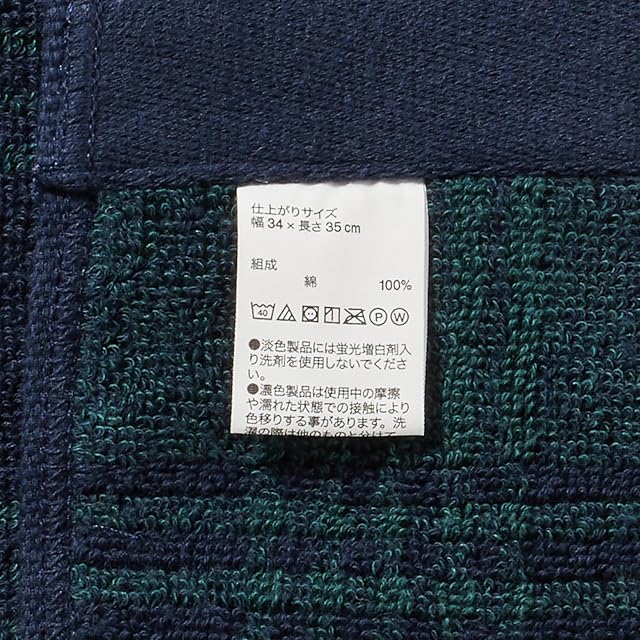 無印良品 ふっくらパイルハンドタオル(柄)・グリーンチェック 6枚組 34×35cm やわらか 83431914