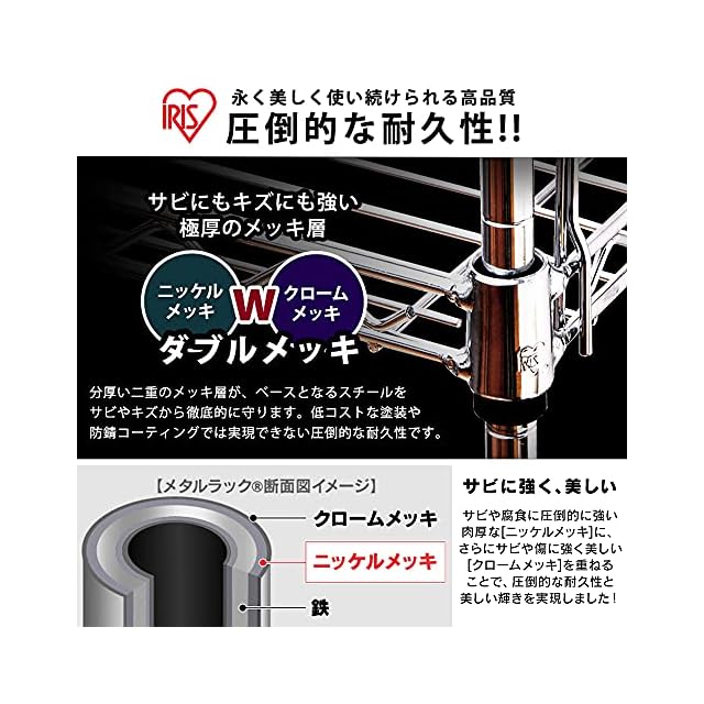 材質:棚板:ポール/スチール(クロームメッキ) アジャスター:ナイロン樹脂、スチール 固定部分:ABS樹脂