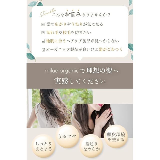 ✅【こんな方に是非使ってほしい】髪のうねりや広がりが気になる方、切れ毛や枝毛を防ぎたい方、オーガニック製品がいいけどごわつく方。是非理想の髪を実感してください。