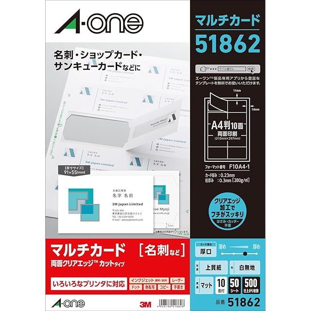 エーワン 名刺 マルチカード 両面クリアエッジ 厚口 500枚分 51862