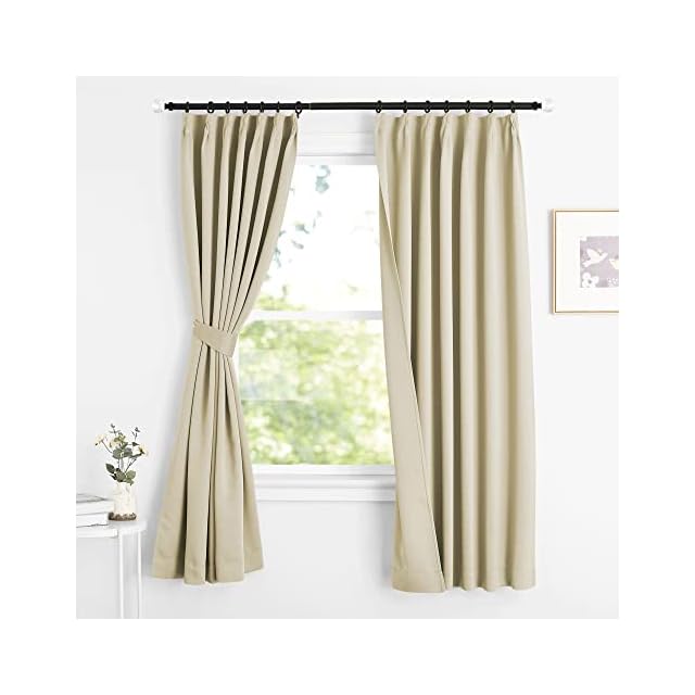 NICETOWN カーテン 遮光 断熱 おしゃれ クリーム 幅100cm丈135cm 2枚組 UVカット 北欧 玄関 防音 省エネ 仕切り用 洗える おしゃれ 居間 リビングルーム 小窓
