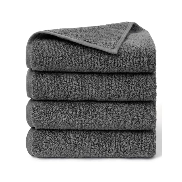 AIFY スリムバスタオル 4枚セット 小さめ 速乾 ふわふわ 柔らか 綿 毛落ちしにくい 耐久性 厚手 軽量 抗菌 防臭 瞬間吸水 ホテル仕様 無地 髪に優しい 肌触りが良い 赤ちゃん エステ サロン ギフト 34×120cm グレー
