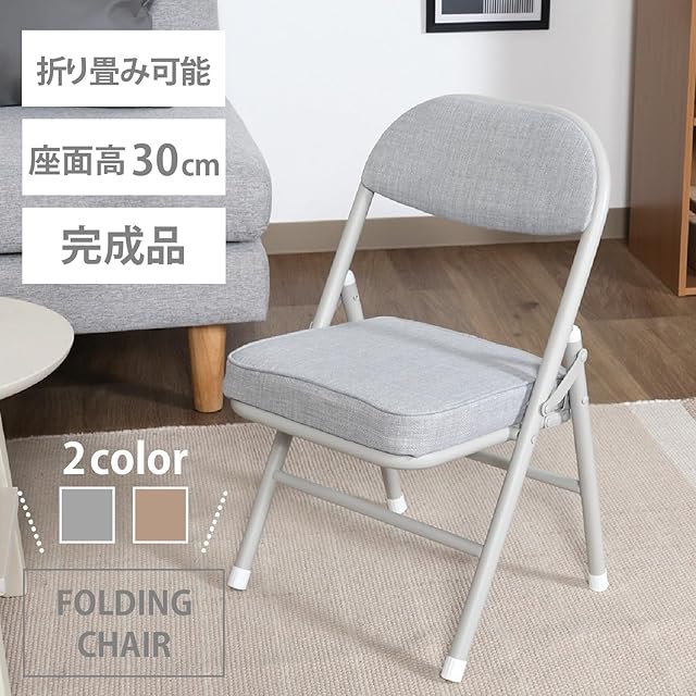 不二貿易 折りたたみチェア 椅子 パイプチェア 座面高30cm ロータイプ ミニ 背もたれ付き 幅34×奥行34×高さ53.5cm ファブリック グレー 73628