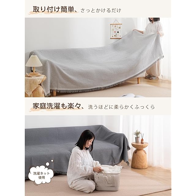 ・【幅広い使用範囲】かけるだけでソファー全体をカバーでき、防塵やキズ防止などの機能があり、ソファーをしかっりと保護できます。多機能で、ベッドカバー、テーブルクロス、冷房毛布、ひざ掛け、防塵カーペット、キャンプカーペット、旅行毛布などとして一年中活躍できます。