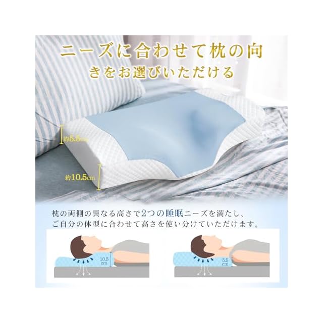 【好みの高さ選択可能】個人差により5.5cmと10.5cm二段階の高さを設計して、枕の向きを変えるだけで、お好みの高さを選択できます。低めの枕がお好みの方でも高めの枕がお好みの方でも、弊店の枕はお客様のニーズにお応えします。