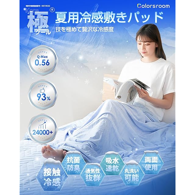 【リバーシブルなので通年使える】表面はQ-MAX0.56の接触冷感生地、蒸し暑い夏の夜でも涼しく快適な睡眠をとります。裏面のパイル生地は、通気性に優れ汗をかいても吸湿放湿!春秋にもベタつかずに使えます。