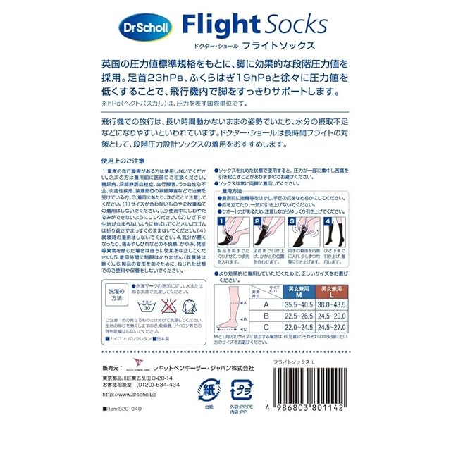 長時間座り続けるフライトでも安心の段階式着圧ハイソックス