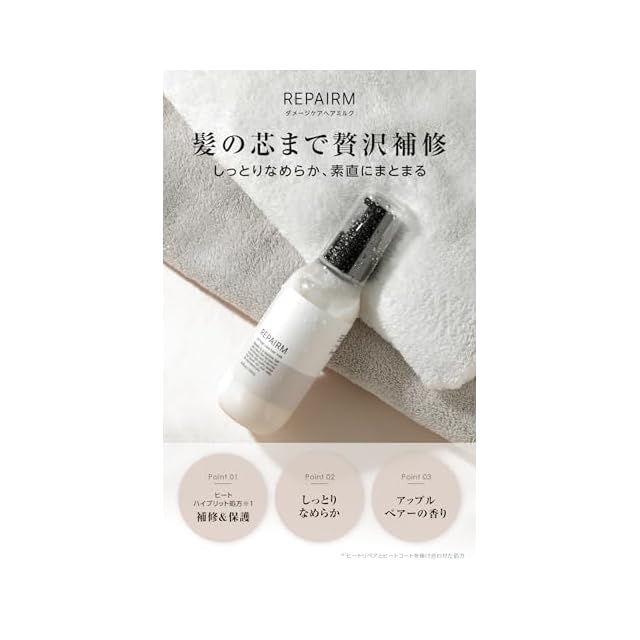 REPAIRM ヘアミルク 洗い流さないトリートメント 【11種類のたんぱく質配合ダメージ補修×しっとりなめらか髪へ×アップルペアーの香り×120ml】 (1本)