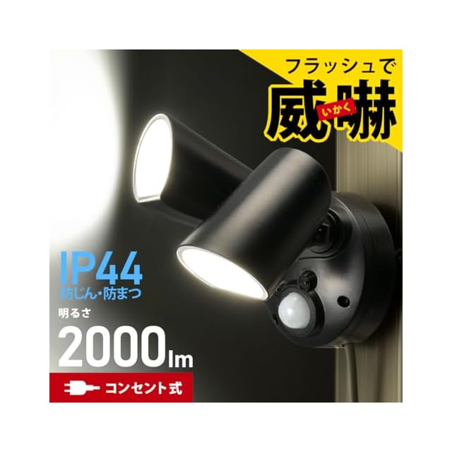 オーム(OHM) センサーライト 高速フラッシュで威嚇 AC電源 2灯 monban 防犯センサーライト コンセント式 2000ルーメン 屋外 セキュリティライト 人感センサー LS-A200A2 07-8816 オーム電機