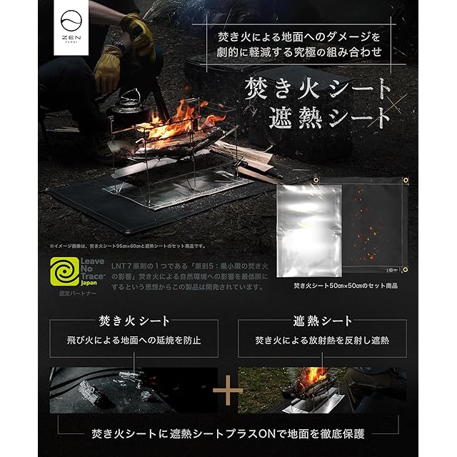 ZEN Camps 焚き火シート & 遮熱シート セット スパッタシート 焚き火台シート チクチクしない シリコン ブラック 黒 耐火 耐熱 防炎 防火 シート キャンプ 芝生保護