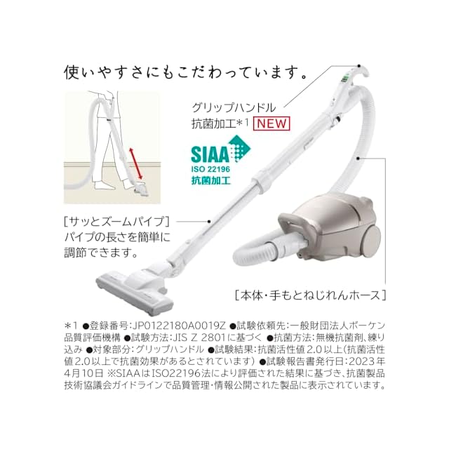 ヘッドが丸洗いできて清潔、小型・軽量の紙パック式