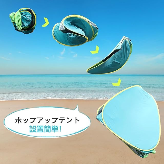 【簡単設置・組立不要】ワンタッチテント式で、収納バックから取り出してパンと広げるだけ、あとは付属ペグで固定すれば設営完了します。初めての方や女性でも気軽に設置することができます。風の強い日、内部ポケットに砂を詰めれば、風対策がさらに強化できます。★テントの畳む方法は商品ページのビデオをご参考ください。