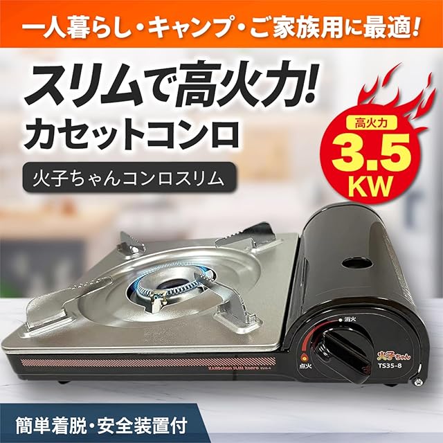 テーティーエス カセットコンロ 火子ちゃん コンロ スリム TS35-8 黒 約幅32.3×奥行26.2×高さ86cm