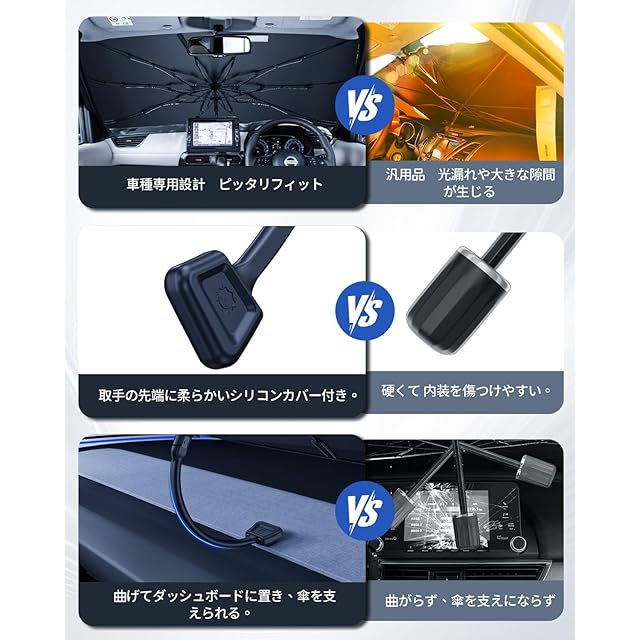 【200℃耐熱。夏を越えるためのプロテクション】真夏のフロントガラスに触れても、安心して使える!先端には縫い付け仕様のシリコンプロテクター、サイドにも高耐熱シールを搭載。熱に強く、歪まず、ベタつかない──その耐熱性、革素材の約3倍!lexus nx 専用サンシェード 傘は、フロントガラスや内装に優しく、“守る”ことを徹底的に考えた仕様で、真夏でも長持ちする安心感。
